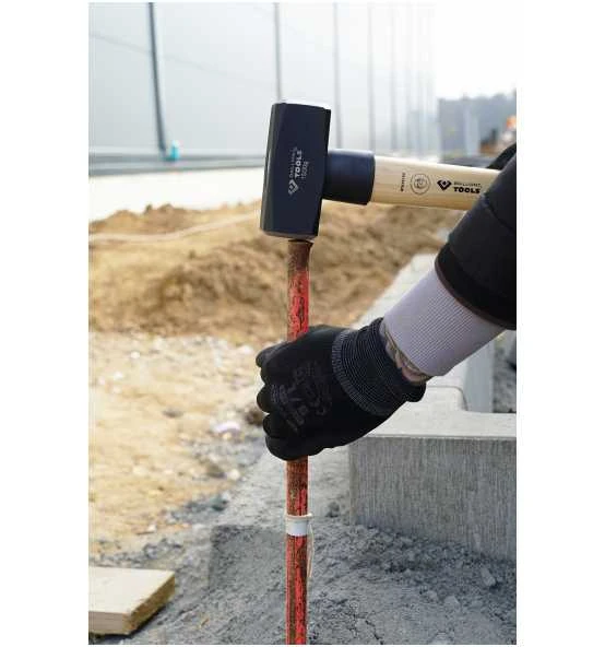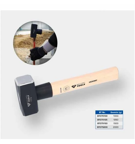 Der BRILLIANT TOOLS Fäustel BT075200 ist nach DIN 1041 gefertigt. Durch eine hochwertige Verarbeitung ist Sicherheit in der Werkstatt, der Industrieproduktion und auf der Baustelle geboten. Der Kopf hat Schlaggewicht von 2.000 g und ist schwarz pulverlackiert und aus legiertem Spezialstahl sogfältig gehärtet und angelassen. Für einen sicheren Griff sorgt der doppelt geschweifte Hickory-Stiel. Der Hammer ist mit einem Kunststoff-Schlagschutz ausgestattet. Falls der Schlag mal danebengeht, ist der Stiel dadurch geschützt. Zusätzlich wird der Stiel mit einem Einschlagkeil im Kopf gesichert. Die Stiellänge beträgt 30 cm.