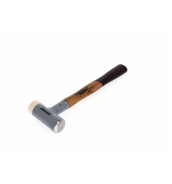 Kostenminderung durch universellen Einsatz als kombinierter Schon- und Schlosserhammer, Universeller Einsatz für Service und Montagearbeiten, Mit allen Vorteilen eines rückschlagfreien Hammers, mit wesentlich höherer Schlagwirkung, Geringerer Kraftaufwand notwendig, dadurch leichteres Arbeiten, Mit austauschbarem, bruch- und verschleißfestem Polyamid-Kopf (No. E 247), 75 Shore D, getestet bis -20 °C, Mit Hickorystiel (No. E 247 H)