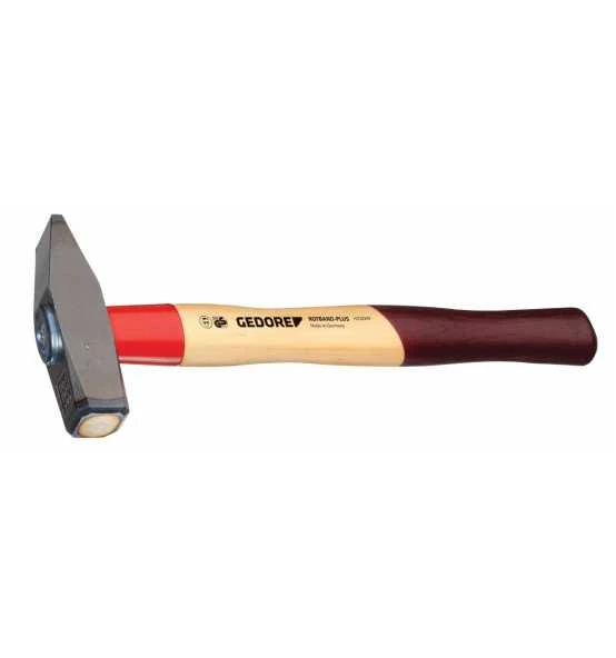 • Doppelt geschweifter Hickorystiel DIN 5111, mit zusätzlicher langer, gehärteter Stahl-Stielschutzhülse