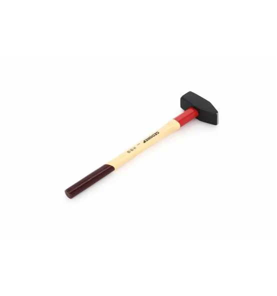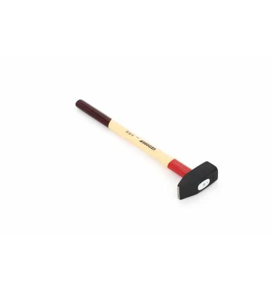 DIN 1042, geschmiedeter Hammerkopf, sorgfältig gehärtet und angelassen, Bahn und Pinne blank geschliffen, vorschriftsmäßiger Kantenbruch, mit Hickorystiel und langer Stielschutzhülse. Ringkeil, Sicherungsplatte und Holzschraube gewährleisten eine sichere Verbindung von Stiel und Hammerkopf.