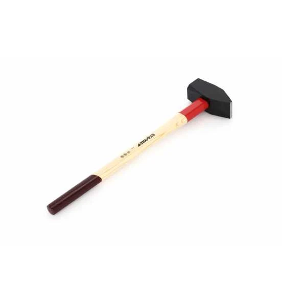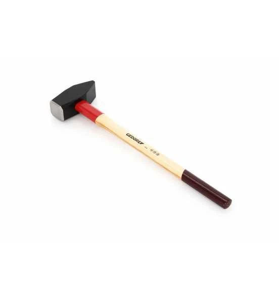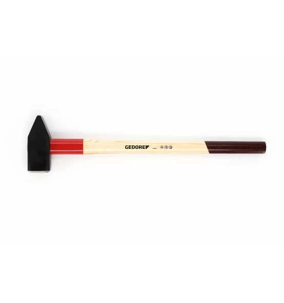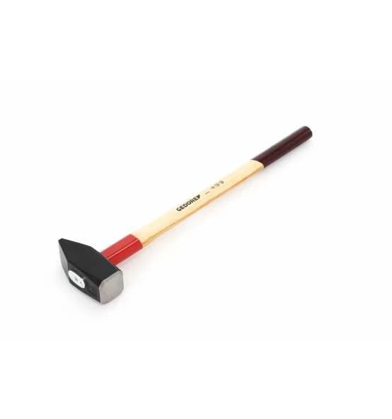 DIN 1042, geschmiedeter Hammerkopf, sorgfältig gehärtet und angelassen, Bahn und Pinne blank geschliffen, vorschriftsmäßiger Kantenbruch, mit Hickorystiel und langer Stielschutzhülse. Ringkeil, Sicherungsplatte und Holzschraube gewährleisten eine sichere Verbindung von Stiel und Hammerkopf.