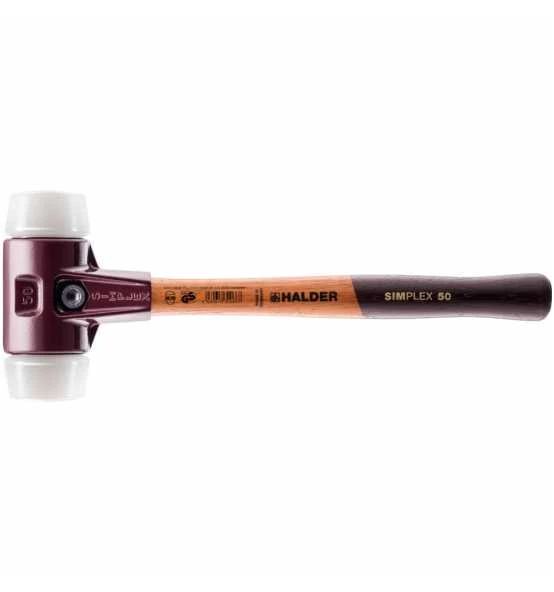 - SIMPLEX–Schonhammer mit beidseitig Superplastik-Einsätzen (weiß, mittelhart, sehr widerstandsfähig).