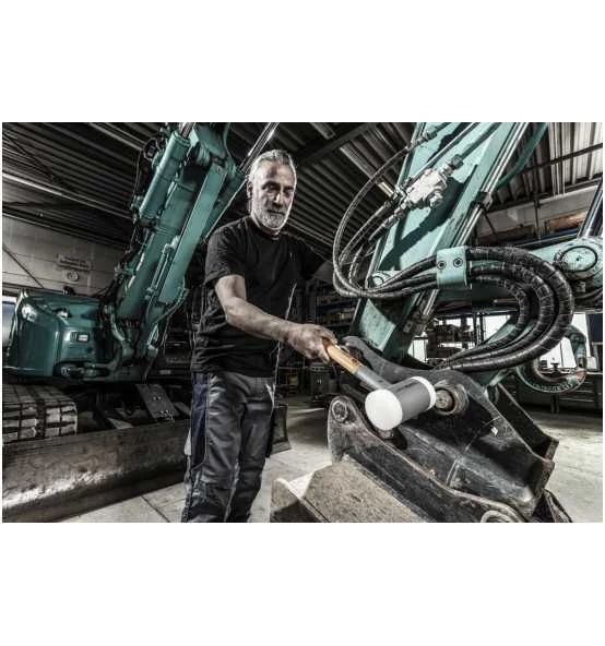 Die Stielschutzhülse beugt Fehlschlägen vor. Eine sichere Stiel-Kopf-Verbindung wird durch einen Aluminiumkeil und Sicherungsstift gewährleistet. Alle Schweißnähte sind komplett robotergeschweißt. Eine extrem dichte und hochwertige Schweißverbindung zwischen Prallplatte und Hammerkopf verhindert das Austreten der Schrotfüllung auch bei maximaler Belastung. Die widerstandsfähige Pulverlackbeschichtung schützt vor Korrosion.