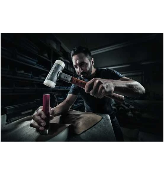 Das Kopfrohr der SUPERCRAFT-Schonhämmer ist mit Stahlschrot befüllt. Dies bewirkt, dass beim Aufprall der Schlagfläche auf das Werkstück die Schrotfüllung verzögert folgt. Durch den verminderten Rückprall wird die Schlagenergie optimal ausgenutzt. Dadurch sind sehr kraftvolle Schläge möglich. Darüber hinaus ist die Arbeit mit SUPERCRAFT-Schonhämmern deutlich sicherer, gelenkschonender und geräuschärmer als mit gewöhnlichen Stahlhämmern.
