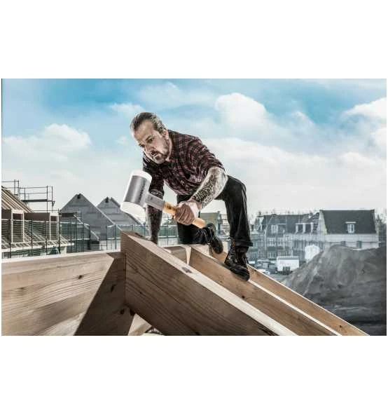 Das Kopfrohr der SUPERCRAFT-Schonhämmer ist mit Stahlschrot befüllt. Dies bewirkt, dass beim Aufprall der Schlagfläche auf das Werkstück die Schrotfüllung verzögert folgt. Durch den verminderten Rückprall wird die Schlagenergie optimal ausgenutzt. Dadurch sind sehr kraftvolle Schläge möglich. Darüber hinaus ist die Arbeit mit SUPERCRAFT-Schonhämmern deutlich sicherer, gelenkschonender und geräuschärmer als mit gewöhnlichen Stahlhämmern.