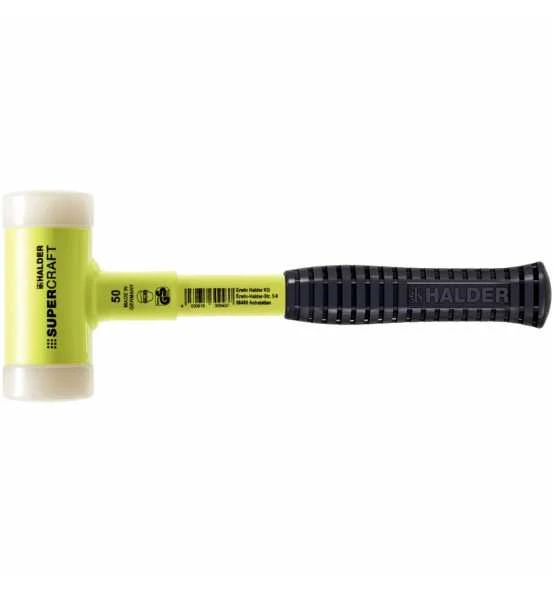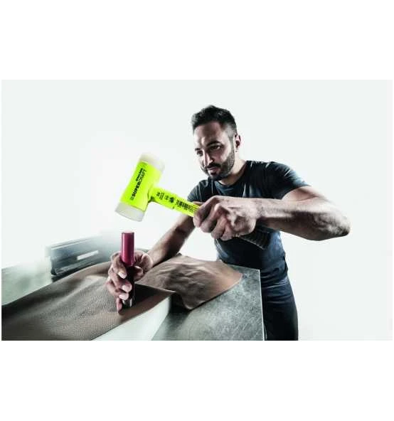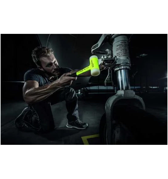 Diese Ausführung enthält einen bruchsicheren Stahlrohrstiel und einen ergonomisch geformten, rutschsicheren Gummigriff. Die gelb-fluoreszierende Pulverlackbeschichtung sorgt für eine schnelle Auffindbarkeit des Schonhammers.