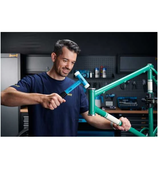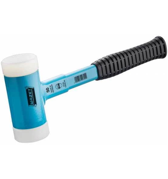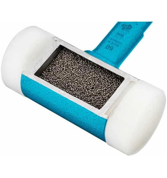 durch Metallkugelfüllung im Hammerkopf-Mittelteil und genau abgestimmtes Material der Schlagköpfe - Auswechselbare Köpfe aus Polyurethan,