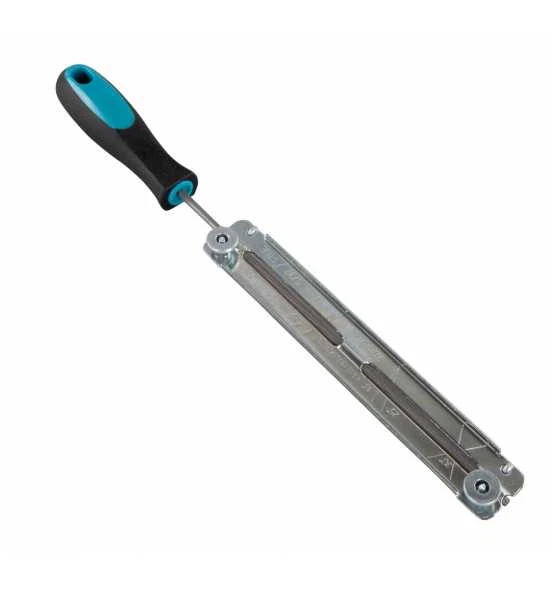Feilenhalter mit Rundfeile 4,0 mm und Kettenmesslehre, mit weichem Feilverhalten