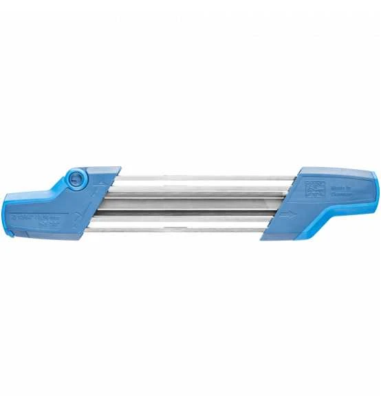 Das Kettensägeschärfgerät umfasst das Schärfgerät, eine Kettensägefeile Classic Line und eine Tiefenbegrenzerfeile.