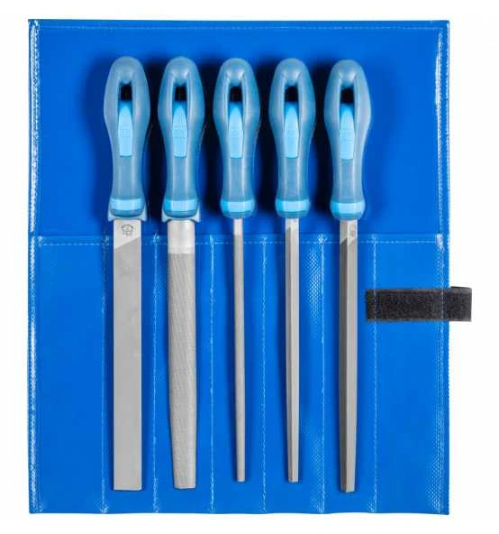 Qualitätsfeilen für Industrie und Handwerk in schützender und klimafester PVC-Rolltasche zur Aufbewahrung im Werkzeugkoffer oder auf der Werkbank.