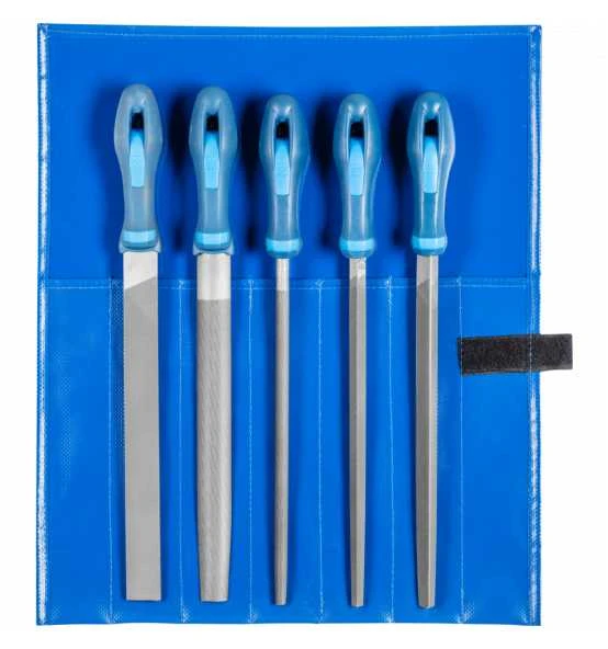 Qualitätsfeilen für Industrie und Handwerk in schützender und klimafester PVC-Rolltasche zur Aufbewahrung im Werkzeugkoffer oder auf der Werkbank.