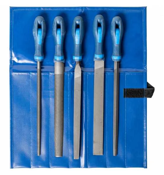 Qualitätsfeilen für Industrie und Handwerk in schützender und klimafester PVC-Rolltasche zur Aufbewahrung im Werkzeugkoffer oder auf der Werkbank.